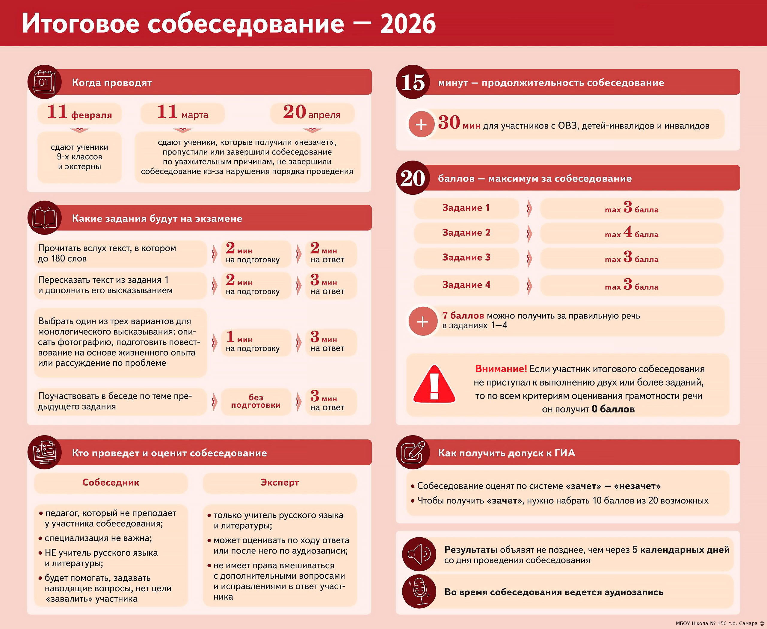 о датах, порядке проведения и порядке проверки итогового собеседования по русскому языку, а также о сроках, местах и порядке информирования о результатах итогового собеседования в 2026 году на территории г.о. Самара